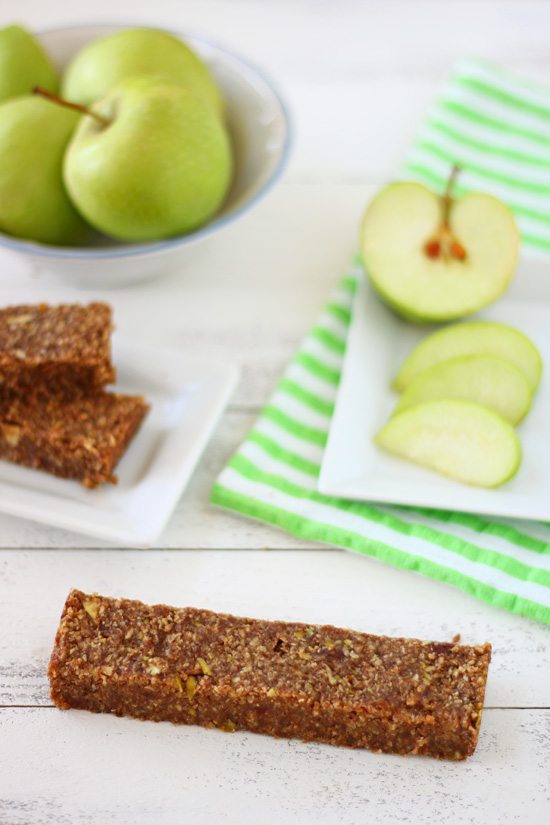 Melegítsük elő a sütőt 180°C-ra, közben egy sütőpapírral bélelt tepsibe oszlassuk el egyenletesen a zabpelyhet és a kesudiót, és süssük körülbelül 10-15 percig, amíg az illatát el nem kezdjük érezni. Ha kész, vegyük ki a magokat, de a sütőt ne kapcsoljuk ki, arra még szükségünk lesz. Egy újabb, közepes méretű tepsit béleljünk ki sütőpapírral, de úgy, hogy a tepsi falára is felérjen a papír. A kész, pirított magvakat, és minden egyéb hozzávalót az alma kivételével tegyük a turmix, vagy daráló gépbe, és keverjük addig, amíg sima nem lesz. Ha kész, keverjük hozzá az almadarabokat, terítsük szét a tepsiben, nyomkodjuk bele egyenletesen, tömörítsük meg egy kicsit, majd süssük 20 percig az egészet. A sütőből kivéve hűtsük 10-15 percig, majd szeleteljük fel őket. Ebből a mennyiségből 10-12 szelet lesz nagyjából.